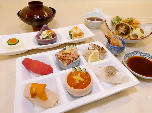 かにと黒舞茸の天ぷら膳