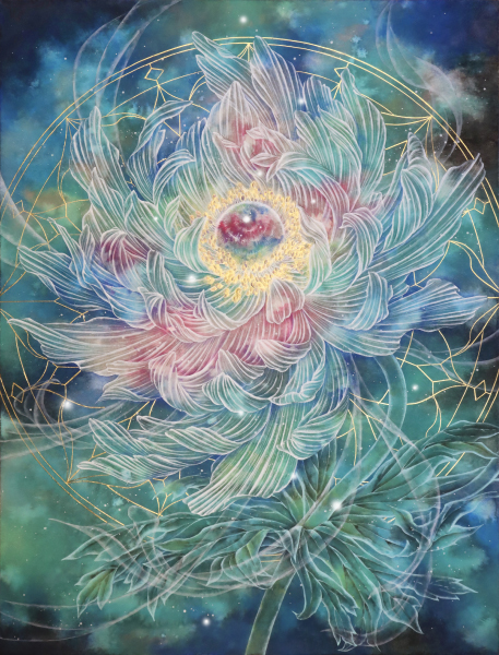 舞い踊るかのように開花する花々を描きます。余白さえも匂い立つ艶やかな作品をご堪能ください。