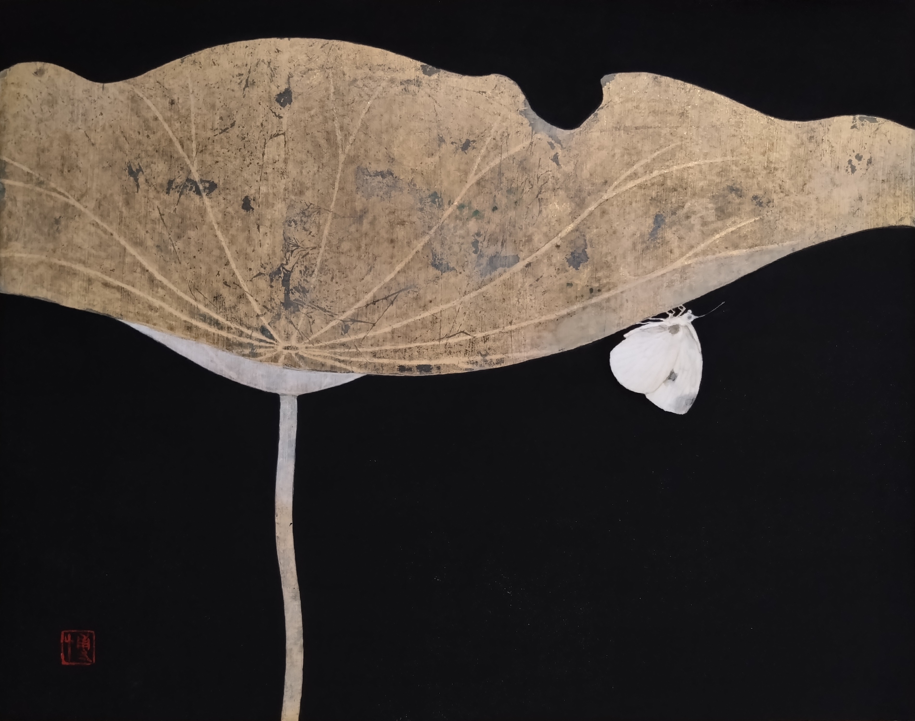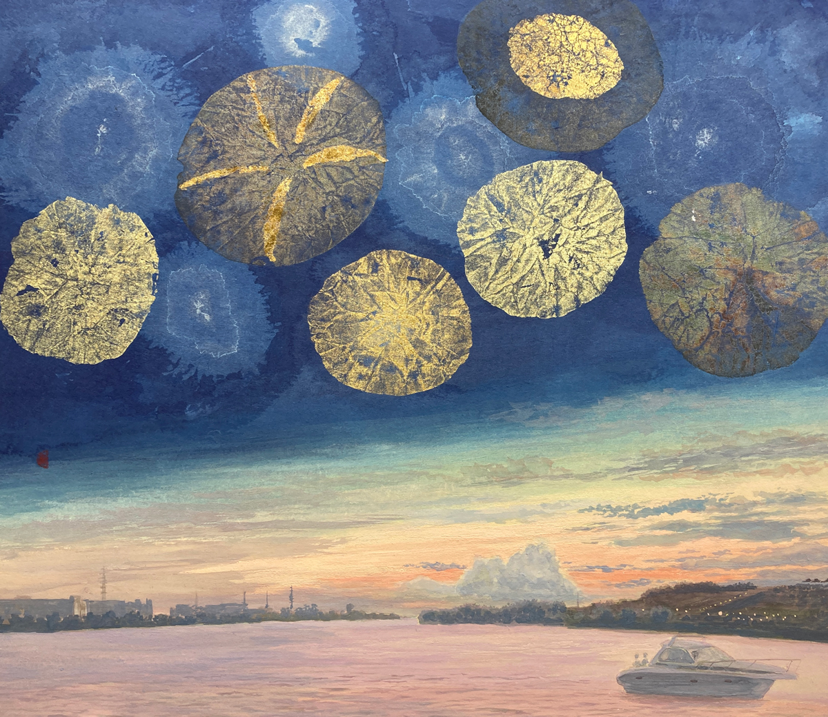 時間の経過と共に在り続けるであろうその充実をとどめておきたくて、景色から抽出したカタチと余白を生かし制作しています。顔料の重なりや素材の物質感を通して、そのものの存在を想い眺めていただければと思います。船跡が波紋となり続いていくように、本展では過去作から現在までの作品を展示いたします。