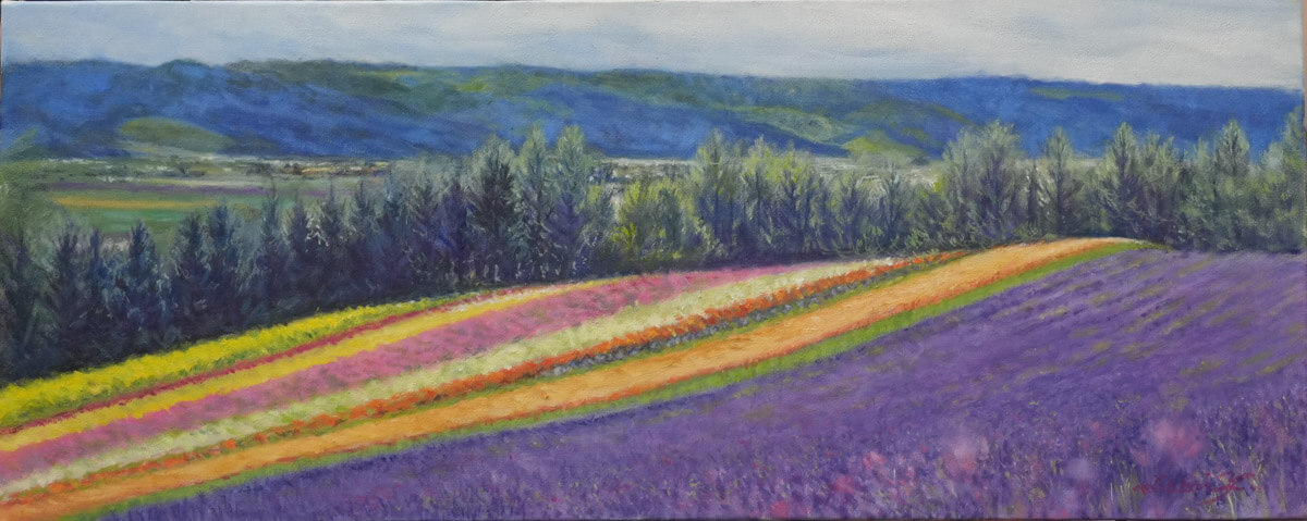 四季の流れのなかに存在する静寂感や、自然の持つ生命力を独自の感性で捉え、日本画の繊細な技法を駆使して隙のない美しさを表現しています。既成の概念にない新しい日本画を追求し続ける姿は、画壇の中で常に注目を集め活躍の場を広げています。