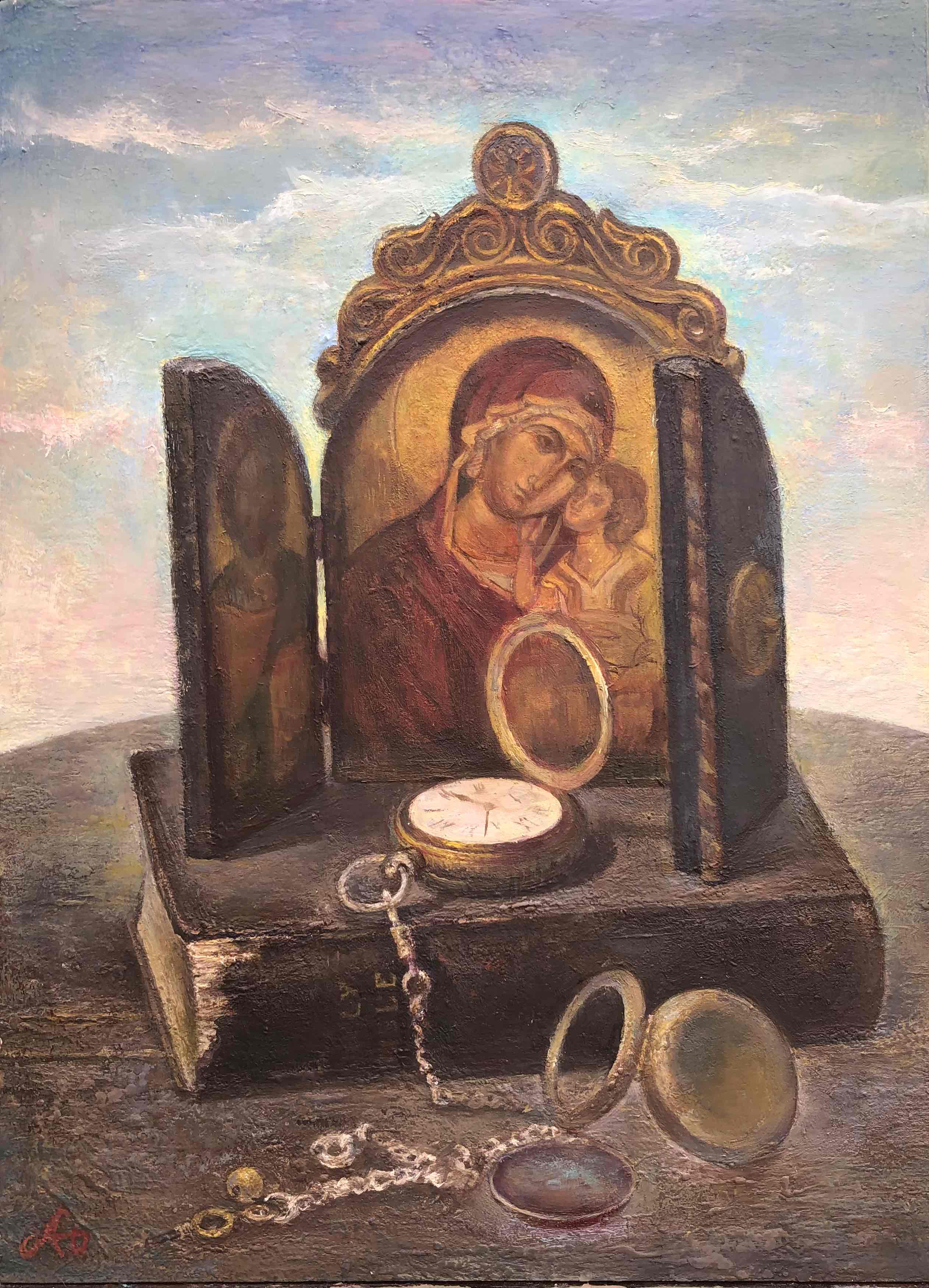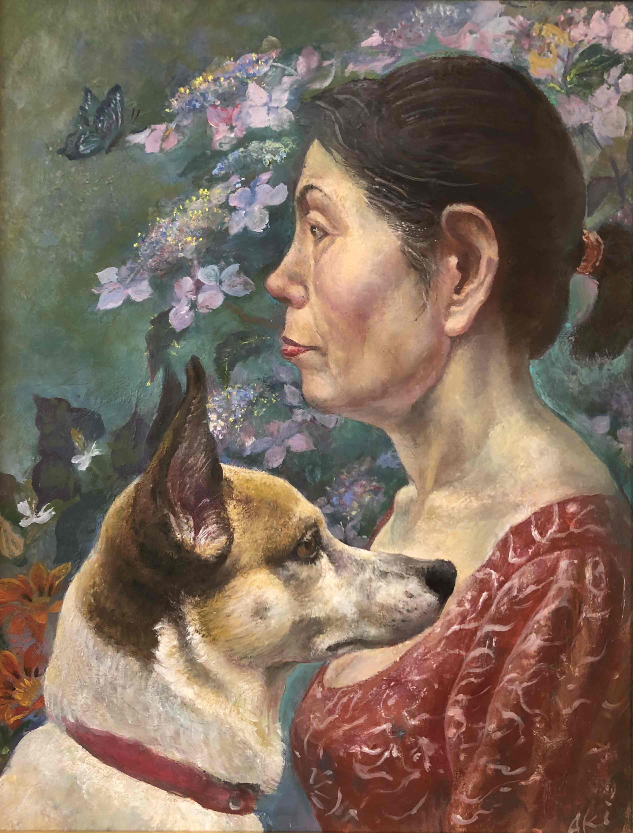 長年、家族や日常を主題に描いてきました。私の絵には、妻や一緒に暮らす愛犬たちがよく登場します。人生で出会う、その時々の思い、哀しみ、おかしみを宿した世界を作り出したいと模索しています。私の絵が皆様のお心に届きましたら幸いです。