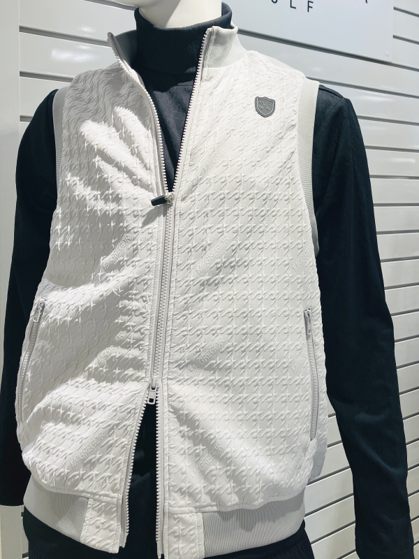 - ポロシャツやハイネックインナーとのレイヤードスタイルが品よく存在感を放つ、ゴルフからデイリーまで幅広く活用できるアイテムです。