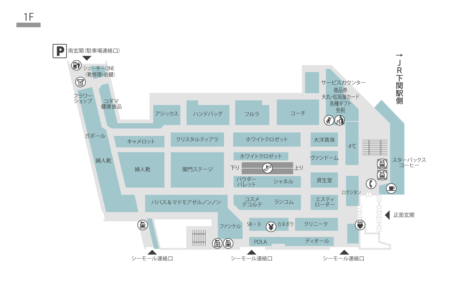 1F 婦人紳士雑貨/化粧品/関門ステージ/商品券・免税・友の会
