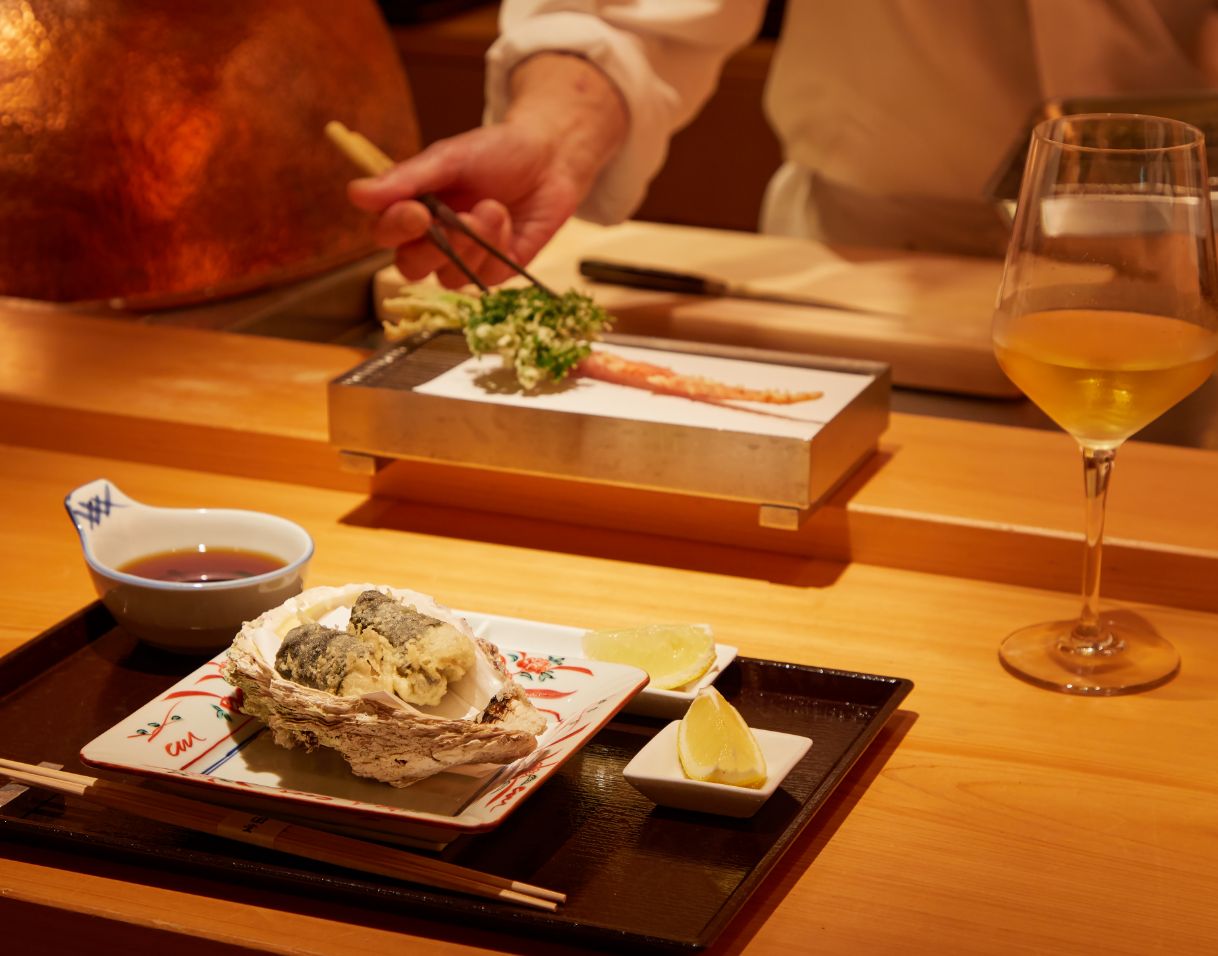 1年がんばった自分へのご褒美に、特別なおもてなしを贈りたい。京都祇園の老舗で鍛え上げられた熟練職人の手による逸品に舌鼓。希少な最高級綿実油で揚げた天ぷらは、サクッと軽い衣の中に、素材本来の旨みが凝縮。コース(税込6,000円~)に追加で、その時々の旬のおすすめをいただくのが通の楽しみです。金時人参を早取りした京かんざしは葉まで柔らかく丸ごと美味、牡蠣は冬の味覚の王者の風格。キリッと冷えたシャブリとのマリアージュも格別です。