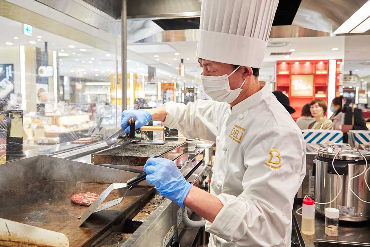 最後に、百貨店の地下食品売場では珍しい、厳選された高品質な牛肉をその場で焼いてくれて、弁当としても持ち帰れるライブ感あふれる惣菜店を紹介します。