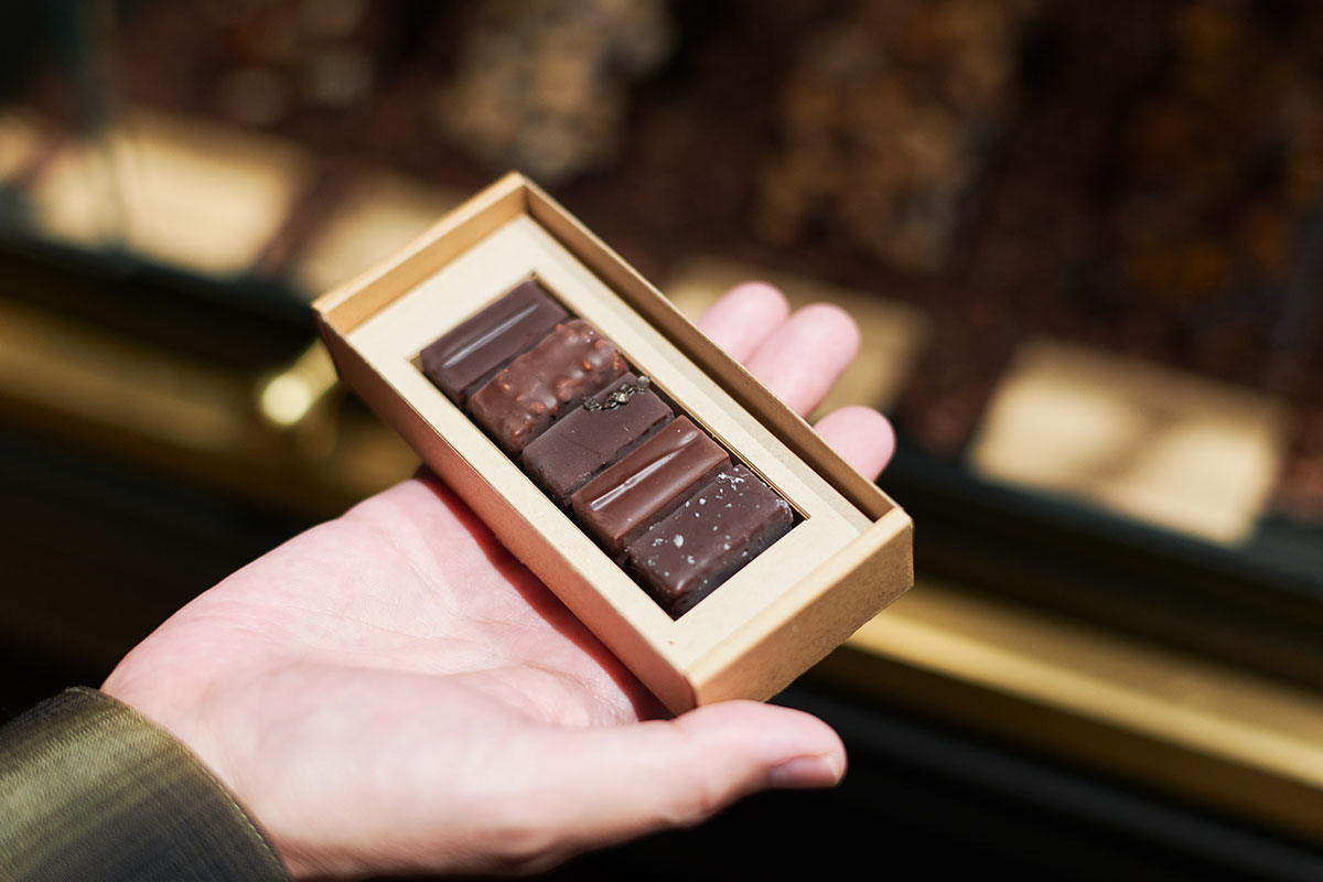 そう言う落合さんが、プレゼントを買うのに一番利用するというのが、「LE CHOCOLAT ALAIN DUCASSE(ル・ショコラ・アラン・デュカス)」。2013年にフランス料理会の重鎮、アラン・デュカスがパリにオープンさせ、日本では6店舗を展開。西日本では大丸心斎橋店だけという希少なショコラトリーです。