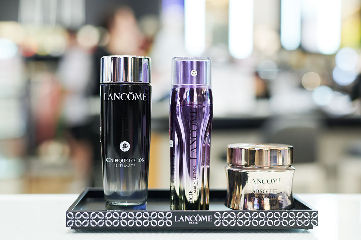 スタッフいわく、導入美容液の後に化粧水、その後に化粧水後の美容液、続いてアイクリームで目元のケア、最後にフェイスクリームというプロセスが「ランコム」としてスキンケアのおすすめコースだそう。