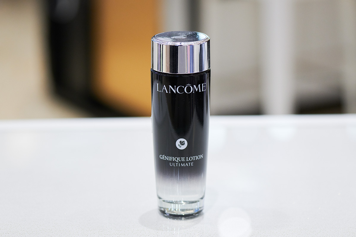 落合さんの愛用度に驚き、感謝しながら、スタッフは、「『ランコム』は今年創業90周年ということで、新商品を続々と発売しています。9月には、落合さんがご愛用いただいている美容液ジェニフィック アルティメ セラムから化粧水が新しく発売されます!」