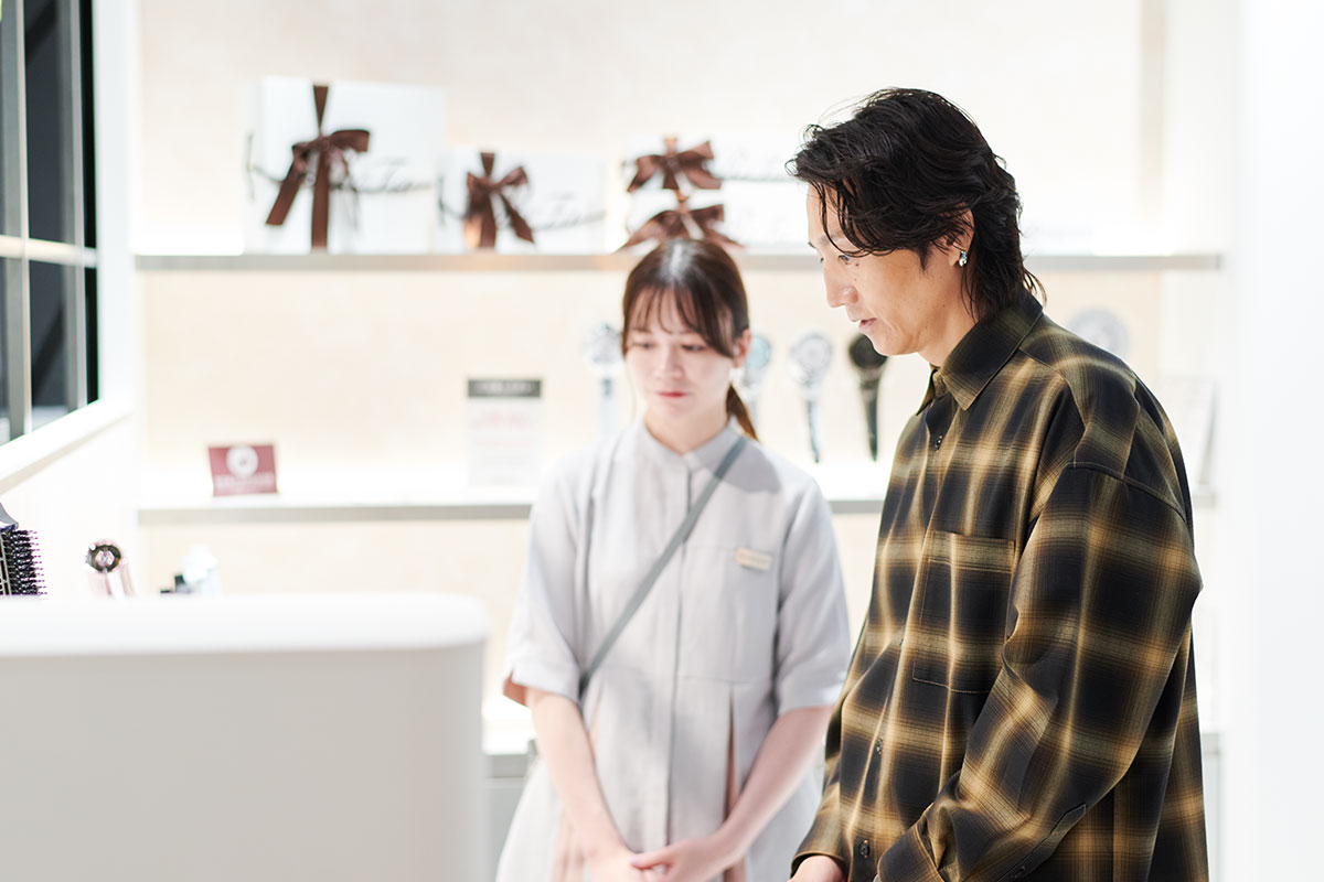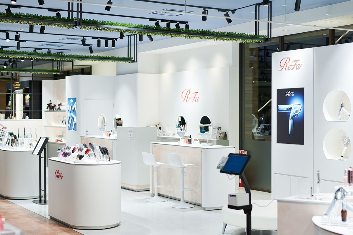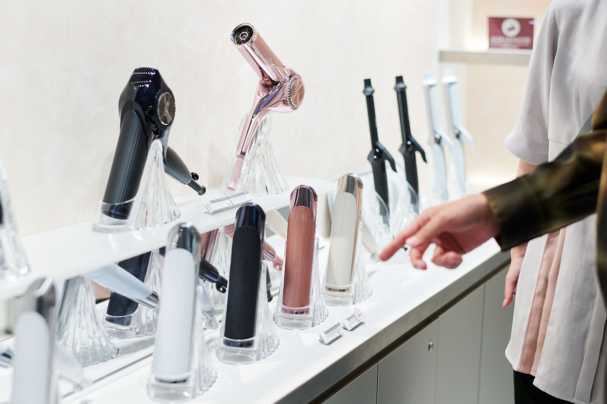 「『リファ』さんのドライヤーって、髪の毛の乾くスピードが早いですよね」という落合さんを、園部さんはドライヤーコーナーに案内してくれました。