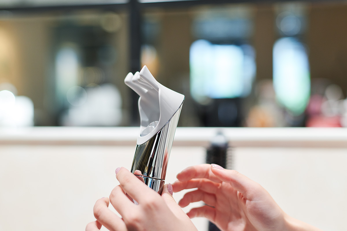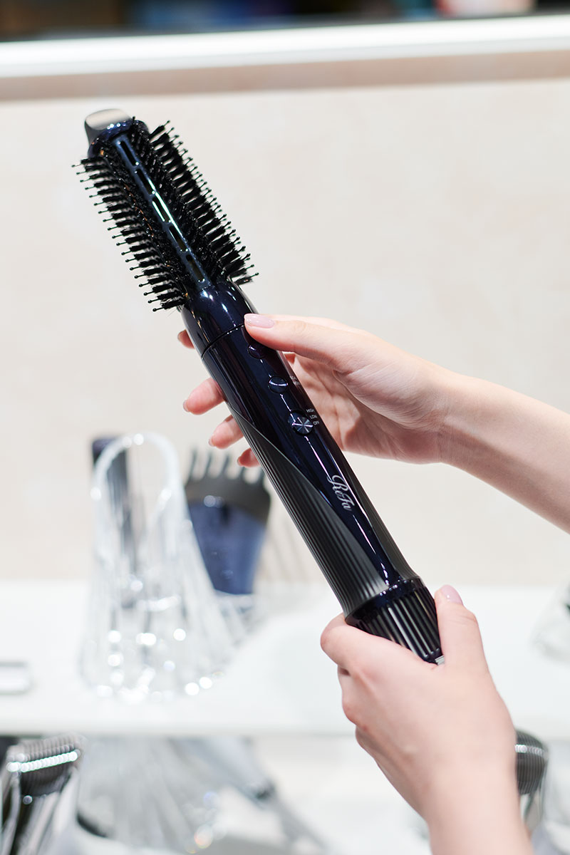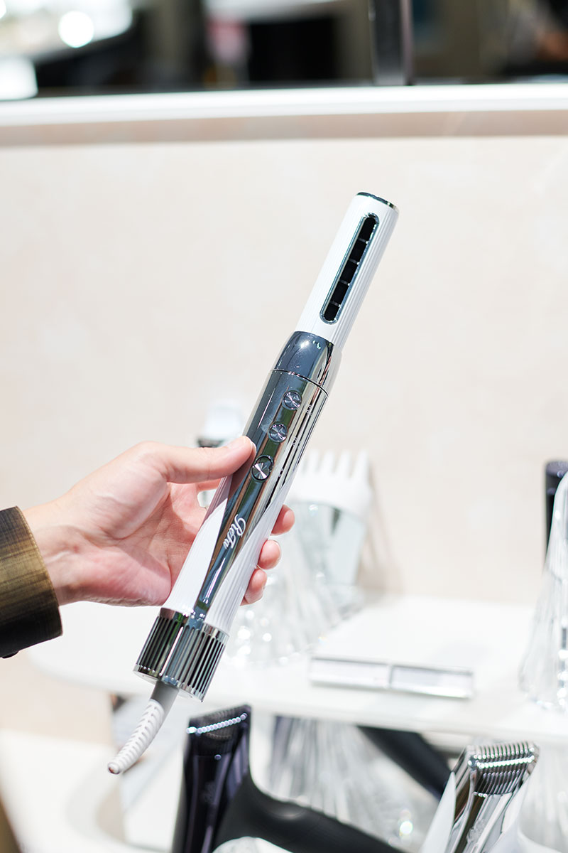 いろいろとドライヤーを手にとっていた落合さん。軽量スティック型ドライヤー、リファビューテック リセッターの説明を受けているときに、そばに置いてあるアタッチメントを見ながら尋ねました。