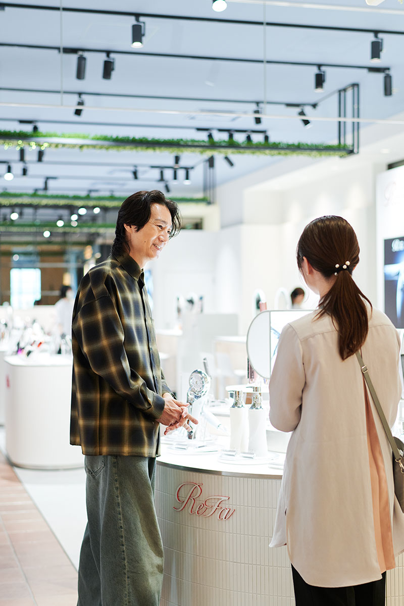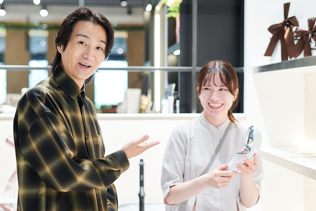 「ドライヤーとフェイスローラーを使っています」という落合さんに、「『リファ』は最初にフェイスローラーで人気が出ました。今はヘアケアアイテムがメイン商品となっていまして、ドライヤーとヘアアイロンが人気ですね」と園部さん。