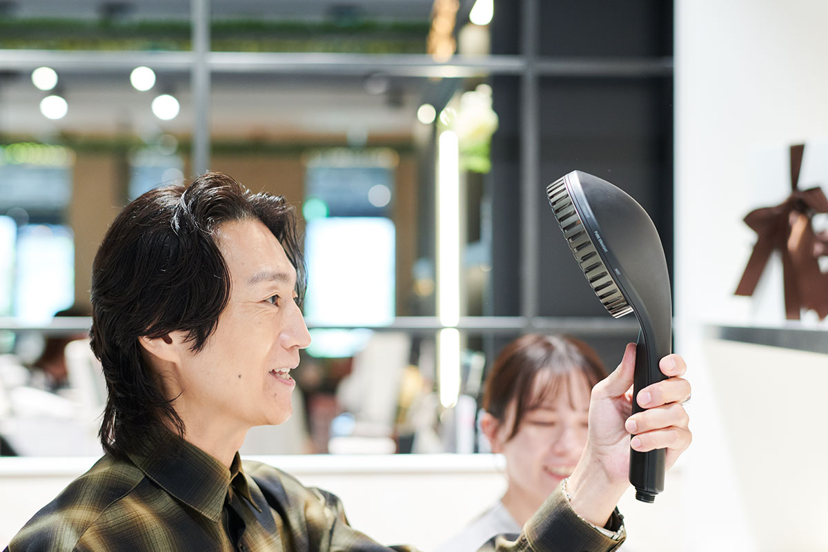 「実は、美容液シャワーが出るシャワーヘッドの新商品が発売されたんです」と待ってましたとばかりに答える園部さん。