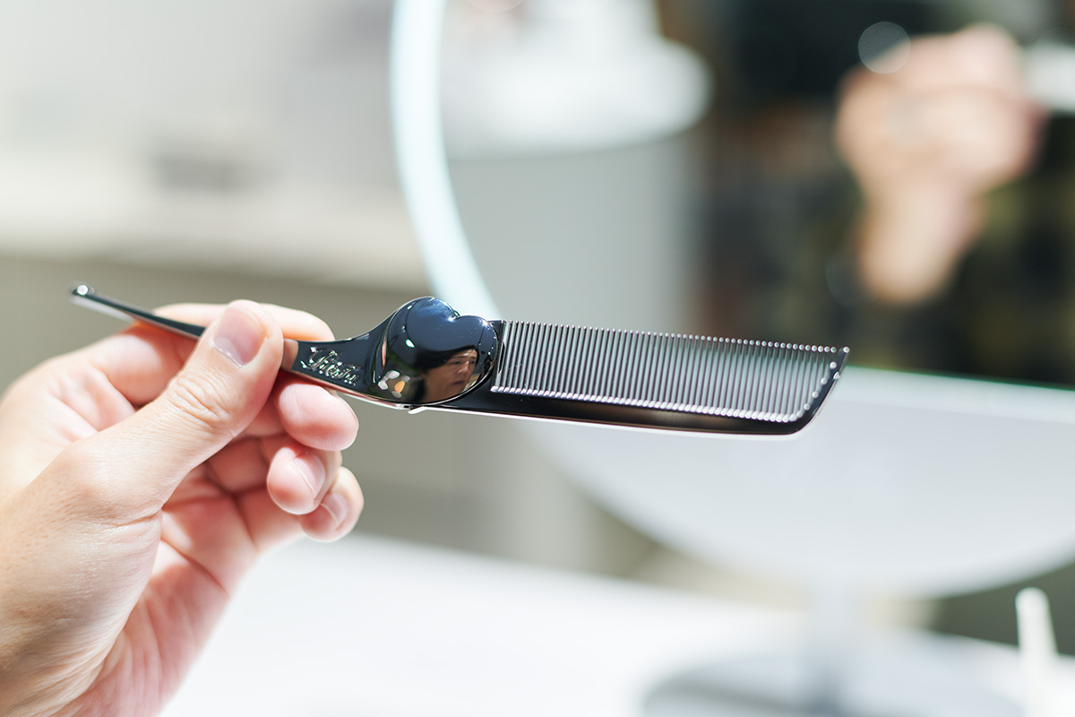 そのほか、今年5月に発売されたリファハートコーム アイラ クロムを試す落合さん。
