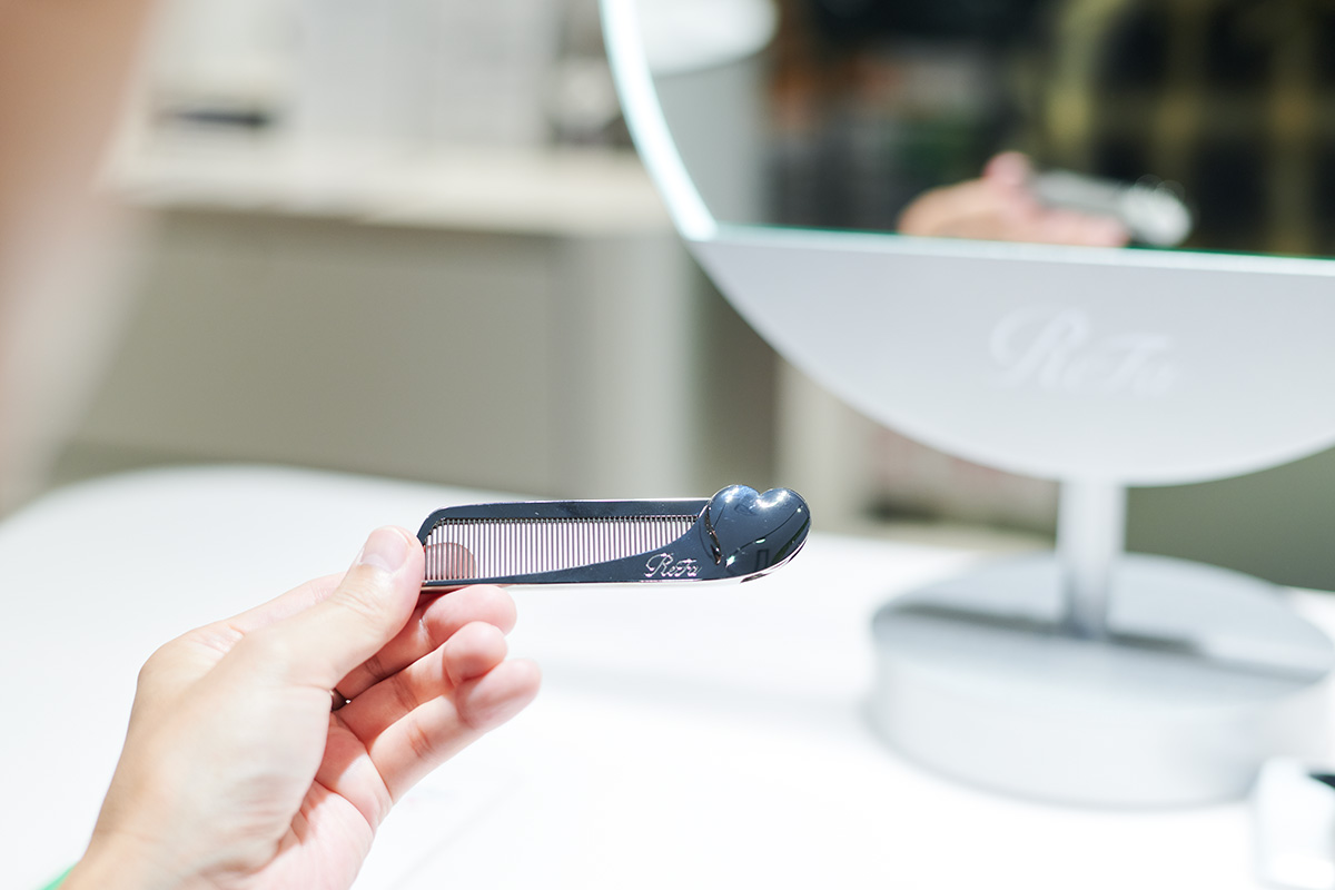 「このコームは折りたためるし、かわいいですね。これもプレゼントに喜ばれそう。『リファ』さんは次から次に新しい商品が出てくるのがすごいですね。時間を見つけて時々ショップに足を運ばなきゃだな」