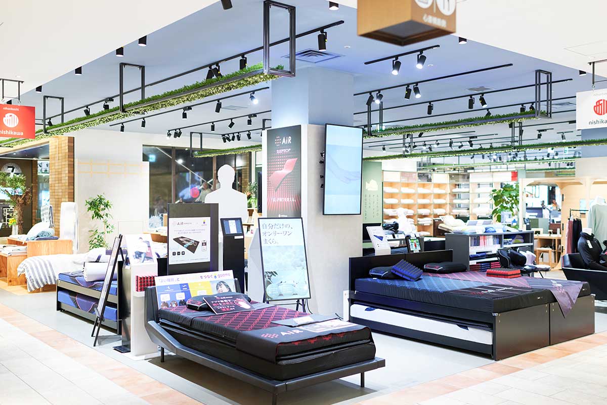 「日本橋西川」は1566年創業nishikawaの老舗寝具専門店。大丸心斎橋店のお店は、2024年9月3日にリニューアルオープンして、西日本最大の店舗となりました。迎えてくれたのは店長でありスリープマスターでもある宇佐美政人さん。