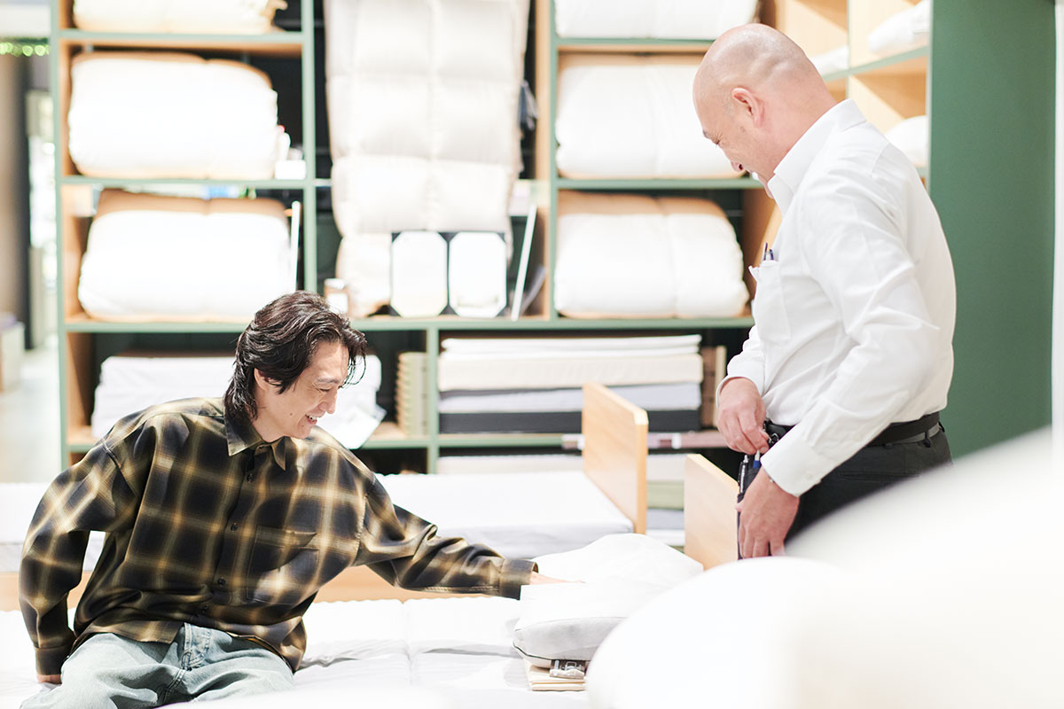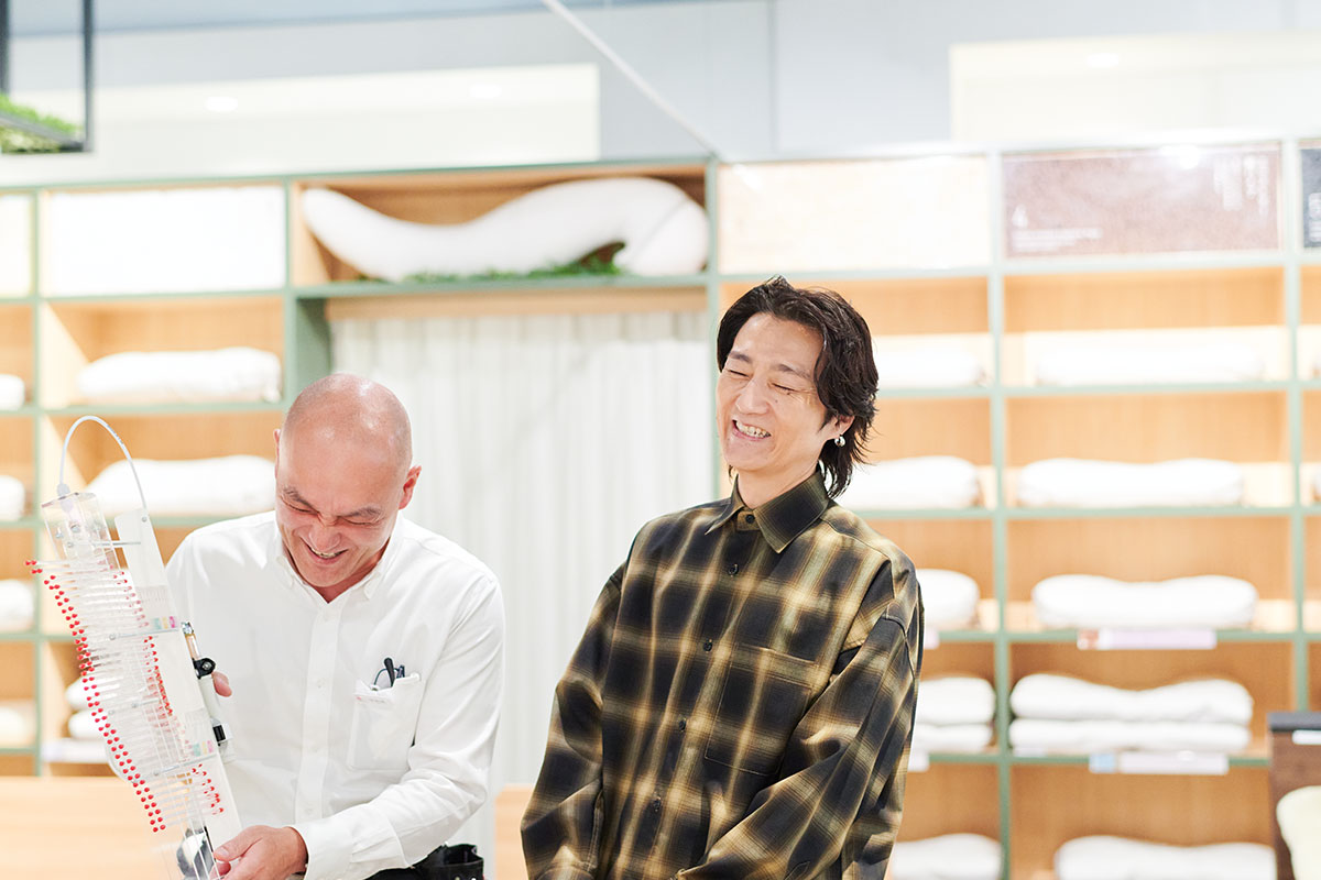 宇佐美店長の心強い言葉に促されて、落合さんは早速自分に合ったまくら探しをスタートしました。