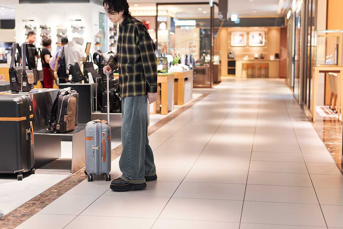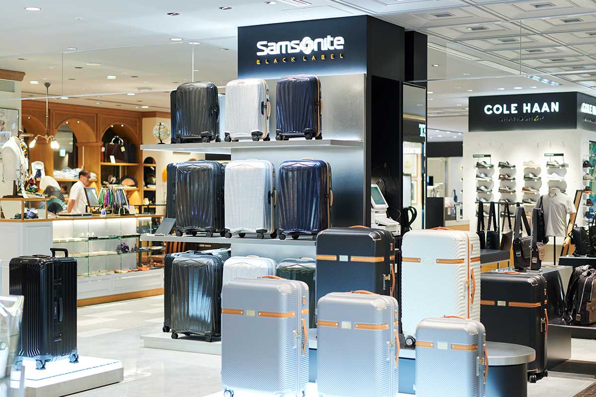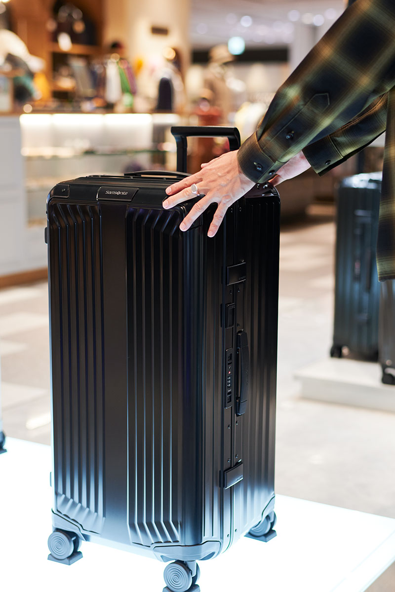 落合さんが最後に訪れたのは、「Samsonite Black Label(サムソナイト・ブラックレーベル)」。アメリカのコロラド州デンバーで創業された「サムソナイト」の中でもハイクラスなアイテムを扱うブランドの直営店です。