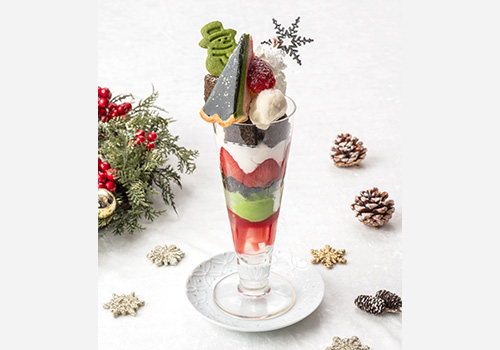 深いコクと香ばしさがたまらない、ほうじ茶アイスにザクザク食感のほうじ茶シュトロイゼル、マカデミアナッツが入った濃厚な塩キャラメルアイスが絶妙な塩味で甘さを引き立てます。いちごの甘酸っぱさが重なり、贅沢な味わいの層をお愉しみください。※12月25日(木)までのご提供です。