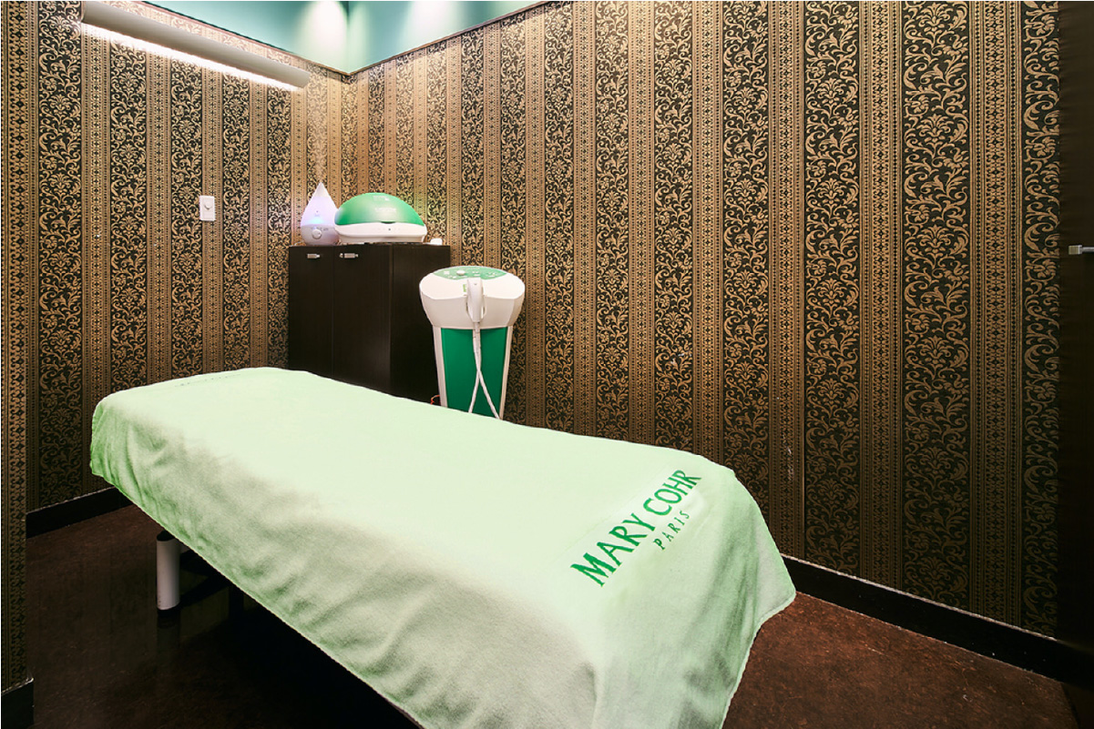 パリ発のエステティックサロン〈マリコール〉。吹き抜けの解放的なサロン空間は、部屋ごとに雰囲気の異なる個室で、日常を忘れさせてくれる優雅な時間を演出いたします。