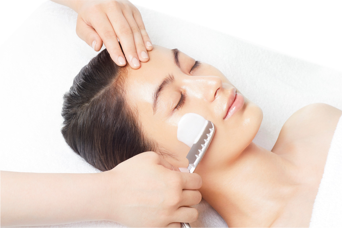 シェービングとトリートメントの合わせ技で、しっとりとやわらかな、透きとおった肌に整えます。