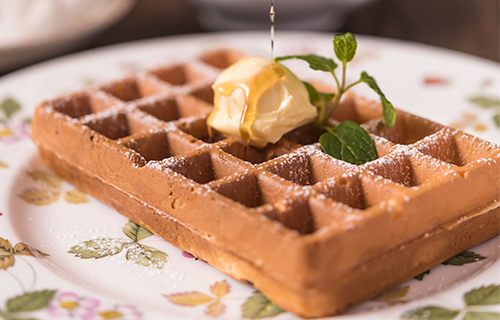 ゆったりと落ち着いた雰囲気の、大人がくつろげるカフェ。香り高いコーヒーとともに、外はパリッ、中はふんわりモチッのワッフルも味わえます。