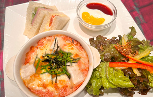 〈カフェ グランシェ スイーツメゾン〉おすすめワンプレートランチ「おもちとタラコソースのドリア」ランチプレート